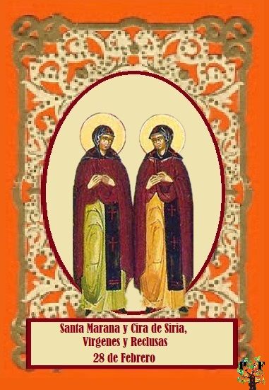 Teodoreto dedica un capitolo (il XXIX) della sua Religiosa Historia a Marana e Cira ancora viventi quando, verso il 440, egli scriveva la sua opera. Anziché riassumere l’inizio defila narrazione in cui l’autore presenta le sue due eroine, converrà usare le sue stesse parole. «Il loro paese (di Marana e Cira) è Berea (odierna Aleppo), dove sono discese da una razza illustre e sono state educate secondo la loro condizione e la loro nascita. Ma disprezzando tutti i vantaggi concessi loro dalla natura, esse si chiusero in un piccolo sito presso la città, facendovi murare la porta. Volendo alcune delle loro domestiche imitarle in questo genere di vita, esse fecero loro costruire una casetta, adiacente al romitorio, in cui ordinarono loro di abitare; osservando i loro atti attraverso una piccola finestra, esse facevano loro fare spesso esercizi di preghiera e le infiammavano nell’amor di Dio... Invece della porta, avevano una piccola finestra attraverso cui ricevevano ciò che era loro necessario per vivere e parlavano con le donne che venivano a visitarle soltanto durante il tempo della «cinquantina» (= tempo pasquale), trascorrendo tutto il resto dell’anno in continuo silenzio, intendo per quanto riguarda Marana, la sola che parli a queste donne. Quanto a Cira, in effetti, nessuno le ha mai udito pronunciare la minima parola. Cira, che è di costituzione più delicata dell’altra, è sempre curvata fino a terra, senza la possibilità di rizzarsi. Esse portano abiti così lunghi che coprono loro i piedi e davanti hanno una specie di velo che scende fino alla cintura e copre completamente il viso, le mani e lo stomaco». Quando Teodoreto scriveva queste righe erano già quarantadue anni che Marana e Cira conducevano questa vita di eremite, rendendola ancor più penosa portando pesanti catene e prolungando talvolta il digiuno sino a quaranta giorni. «Spinte dal desiderio di vedere i luoghi santi che Gesù Cristo ha onorato con le sue sofferenze, esse andarono, a digiuno, fino a Gerusalemme, mangiando soltanto dopo aver adorato Dio, e durante il ritorno ripresero a digiunare, sebbene occorressero non meno di venti giorni per fare un così lungo cammino». Un’altra volta esse andarono allo stesso modo in Isauria per visitare la chiesa di santa Tecla, la protomartire. Col passare del tempo Marana e Cira non rallentarono in questo modo di vita, al contrario, esse andavano con un ardore senza posa rinnovellato verso la corona che il Cristo doveva mettere loro sul capo dopo la loro vittoria. Ignoriamo la data della morte di Marana e Cira essendo Teodoreto la nostra unica fonte. I sinassari bizantini commemorano le due sante eremite al 28 febbraio, ma si tratta di una data scelta arbitrariamente. H. Delehaye ha infatti dimostrato come i trenta asceti (o coppie di asceti) ai quali Teodoreto aveva dedicato un capitolo della sua Religiosa Historia, siano stati introdotti in blocco nei sinassari, nello stesso ordine con cui erano citati dallo stesso Teodoreto, in date che vanno dal 13 gennaio al 1° marzo. In Occidente Marana e Cira non hanno avuto uno speciale culto prima che C. Baronio le introducesse insieme al 3 agosto, data arbitraria quanto le precedenti, nel Martirologio Romano. Nelle adnotationes a questo giorno egli fa direttamente riferimento a Teodoreto, poiché i calendari bizantini che aveva a disposizione (in particolare il cosiddetto Menologio del cardinale Sirleto) non portavano, al 28 febbraio, la memoria di Marana e Cira.